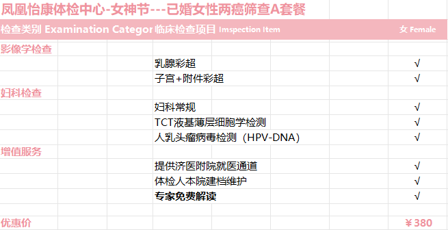 健康是幸福的源泉,體檢是女性健康必不可少的“護身符”,為了幫助廣大女性未病先防、既病防變、病后防復(fù),提高生命健康質(zhì)量,鳳凰怡康體檢中心為女神們獻上一份健康厚禮,特推出3.8女神節(jié)健康體檢套餐!